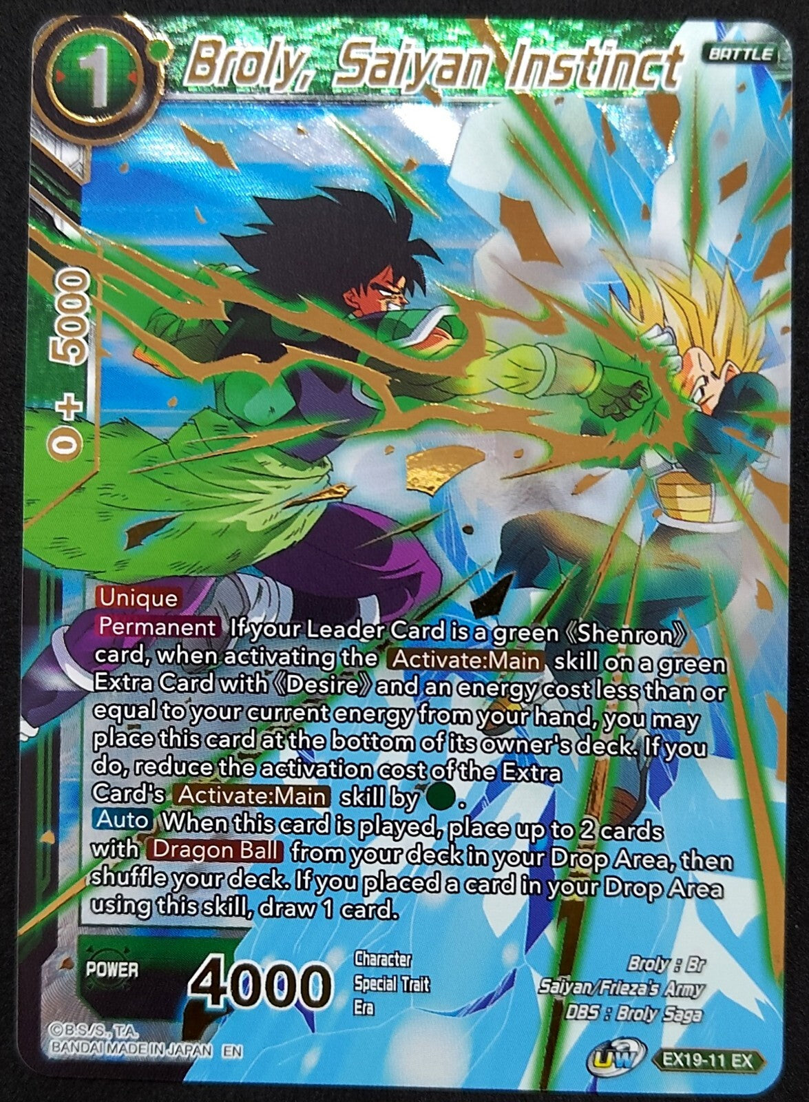 – Sold Out"Dragon Ball Super - Broly, Saiyan Instinct EX19-11 Foil NM/M Card is a highly sought-after collectible card from the Dragon...