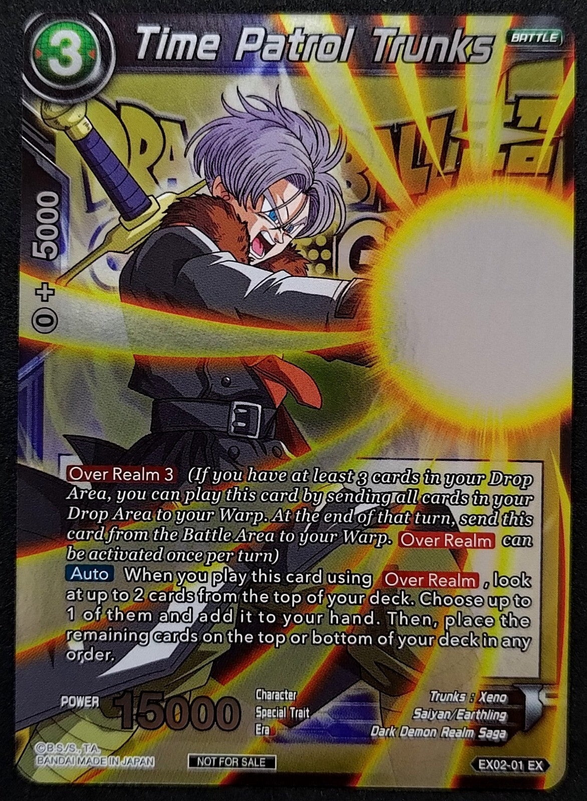 Upgrade your Dragon Ball Super Card Game collection with this Time Patrol Trunks EX02-01 EX Event Pack 2018 Foil NM/M...