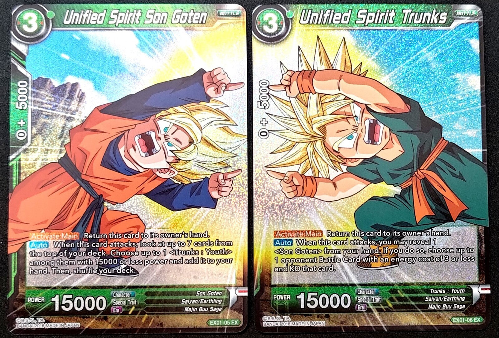 – Sold OutDragon Ball Super - Unified Spirit Son Goten & Trunks EX01-05 + EX01-06 NM/M. This listing features two cards from...