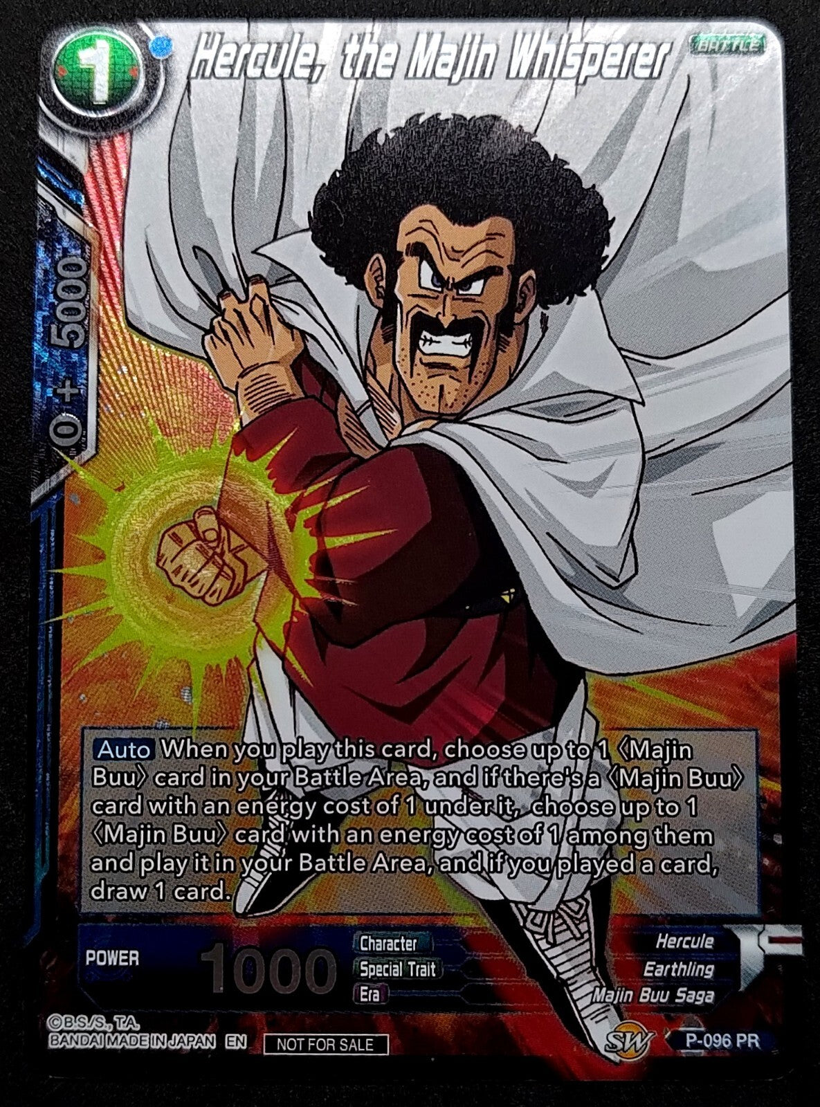 Dragon Ball Super Card Game collectors will appreciate this English language Hercule, the Majin Whisperer P-096 PR foil card in...