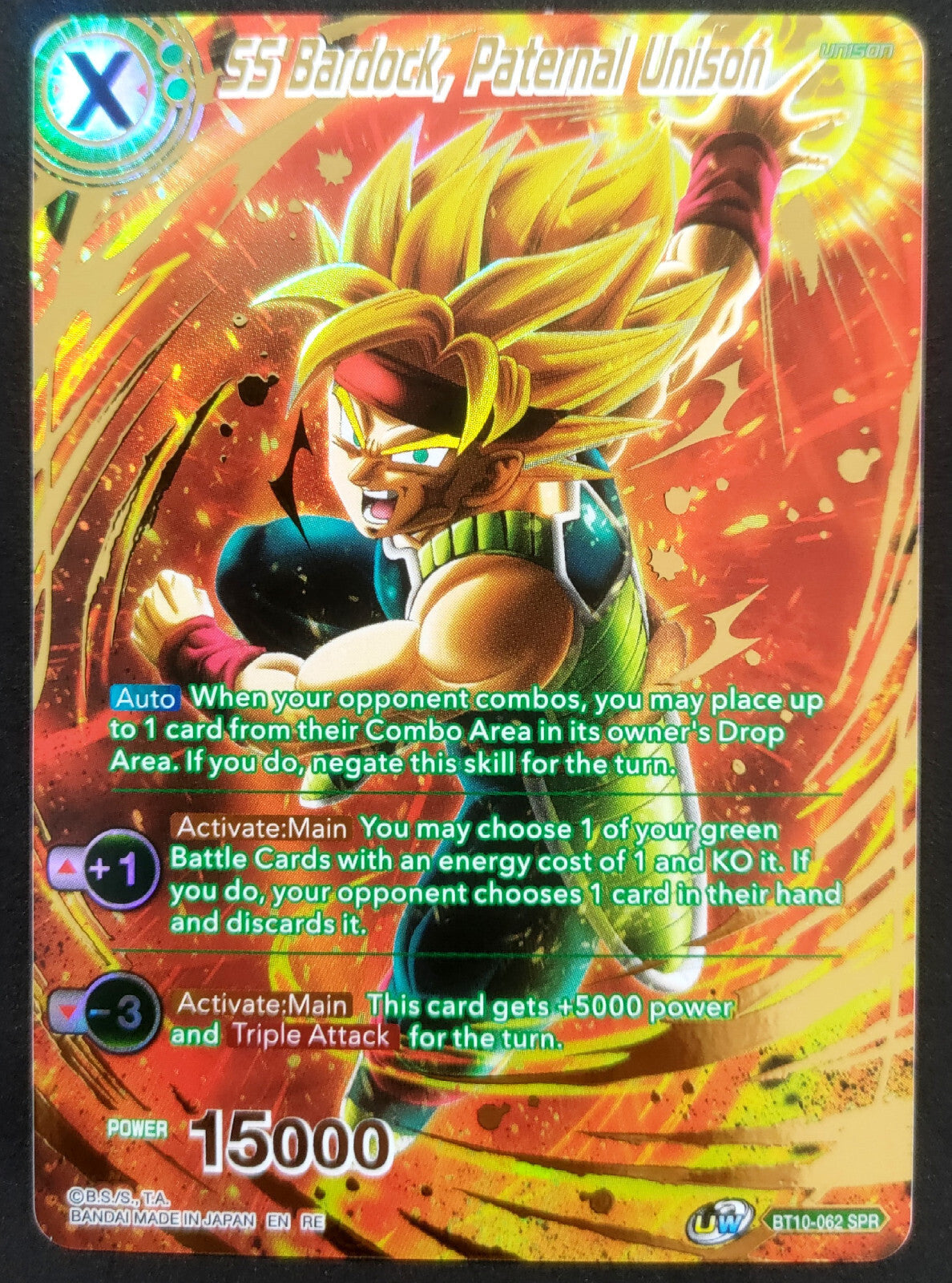 DBS - SS Bardock, Paternal Unison BT10-062 SR NM/M Card. Card is in NM/M condition. Card will be sent tracked,...