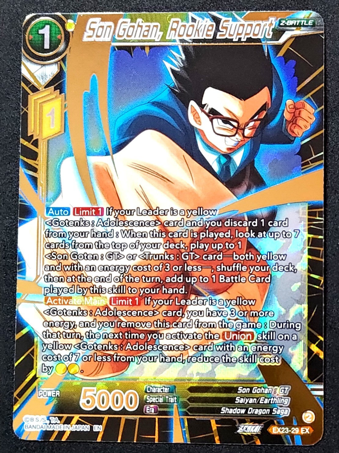 Dragon Ball Super Card Game presents Son Gohan, Rookie Support EX23-29 EX from the Premium Anniversary Box. This standard-sized, English...