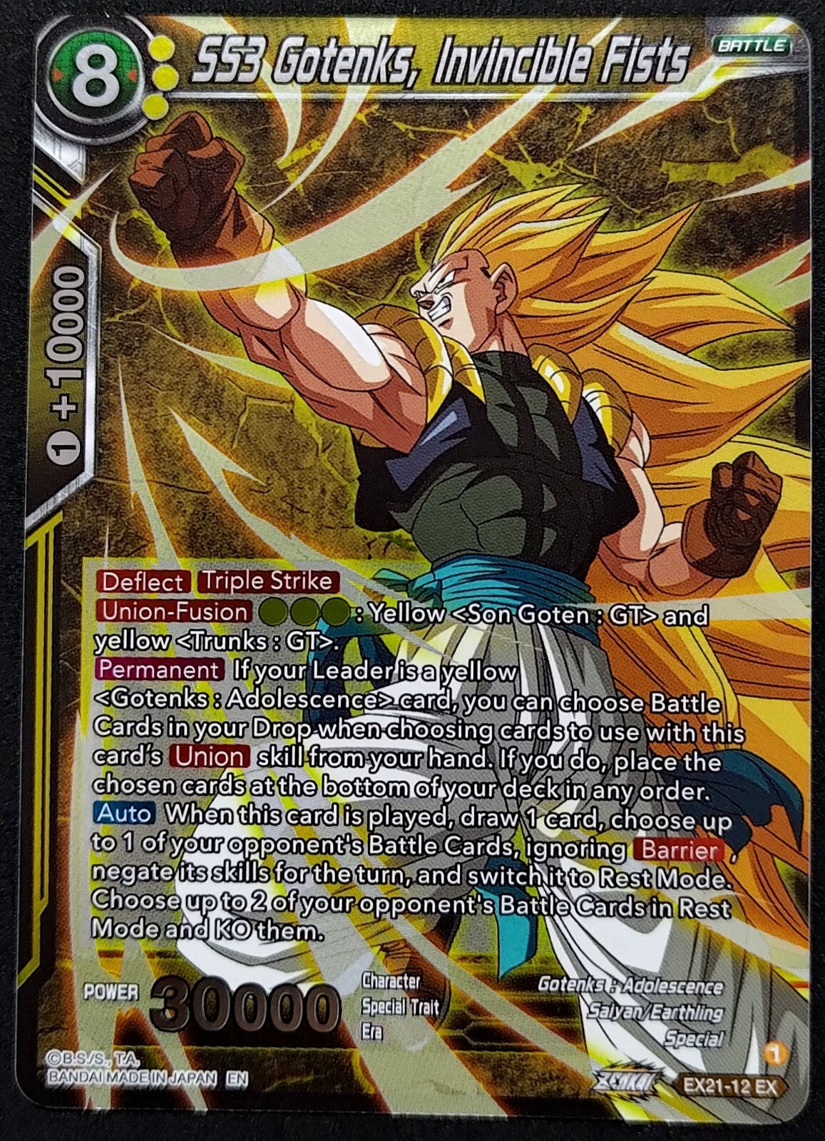 Dragon Ball Super Card Game collectors can now add the powerful SS3 Gotenks, Invincible Fists EX21-12 Foil card to their...