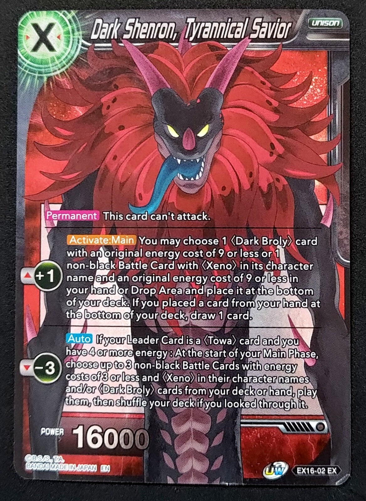 Dragon Ball Super - Dark Shenron, Tyrannical Saviour EX16-02 EX Foil NM/M Card. This rare and valuable collectible card is...
