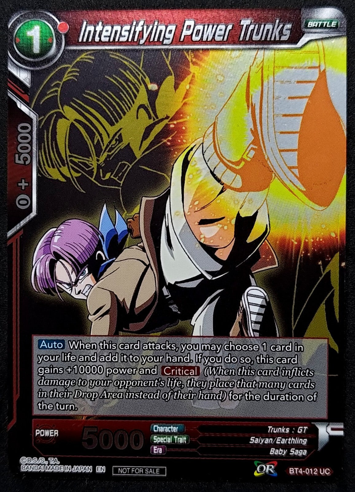 Dragon Ball Super fans, get ready to add the Intensifying Power Trunks card to your collection! This stunning foil card...