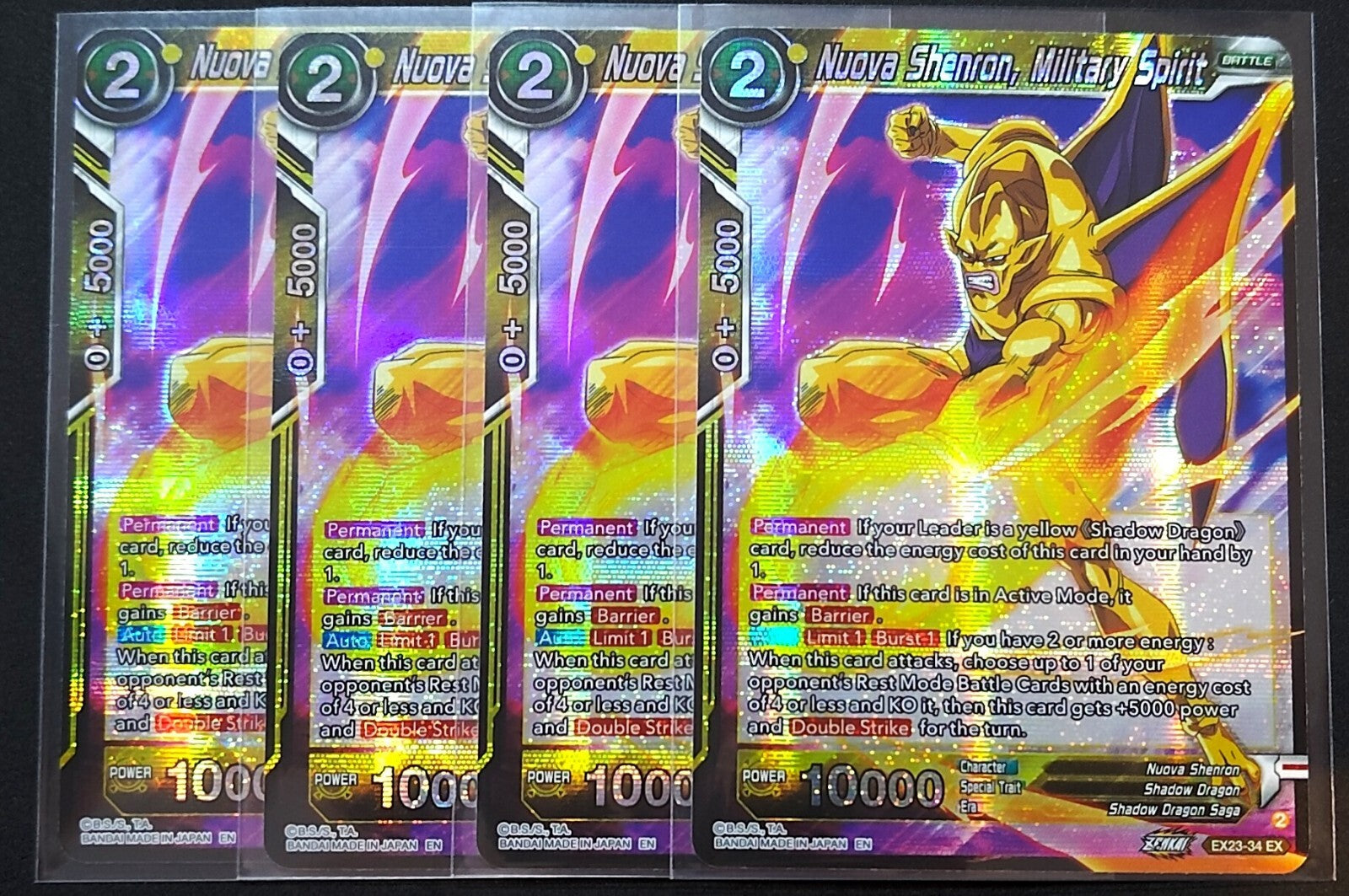 Dragon Ball Super fans, add Nuova Shenron, Military Spirit to your collection with this playset of 4 EX23-34 EX cards...