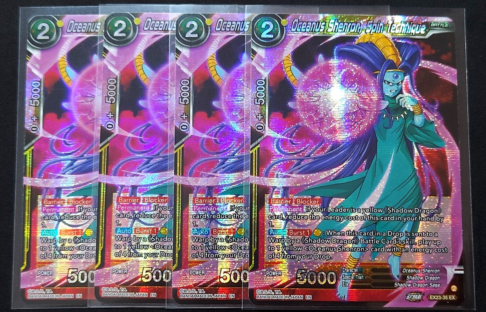 Oceanus Shenron, Spin Technique is a playset of 4 EX23-35 EX Dragon Ball Super cards in near-mint or better condition....