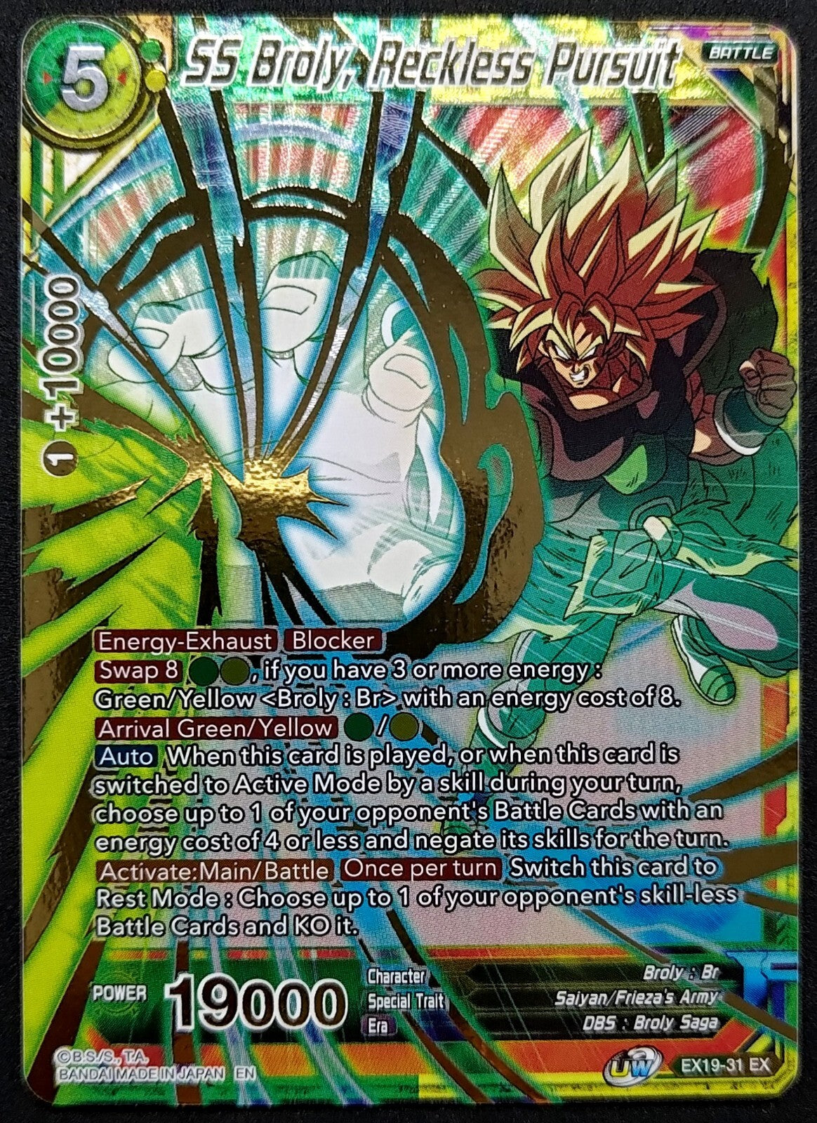Dragon Ball Super fans, get your hands on this Special Rare SS Broly, Brutality Beyond Measure card from the Saiyan...