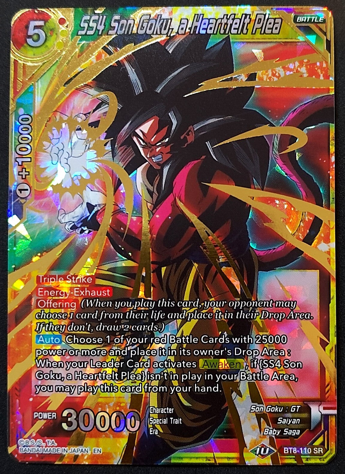 Dragon Ball Super fans, get ready to add the Super Rare SS4 Son Goku, a Heartfelt Plea card to your...