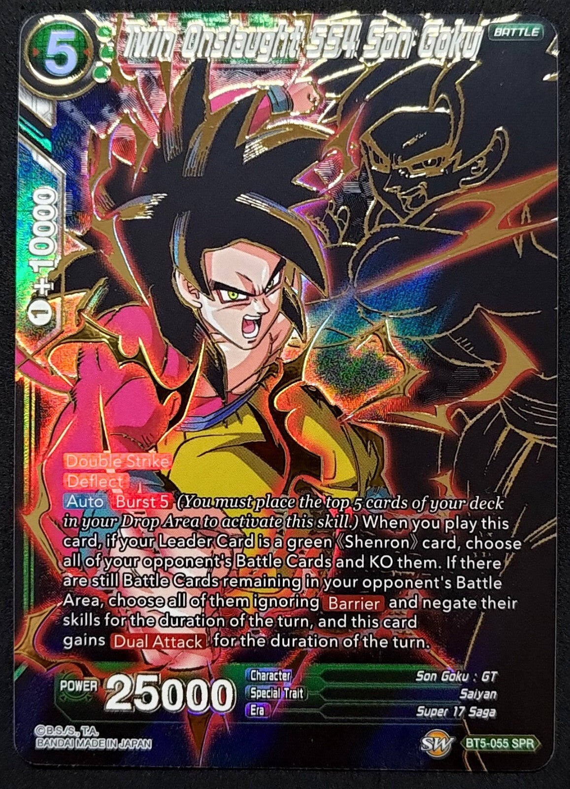 Get your hands on the highly sought-after Twin Onslaught SS4 Son Goku card from the Dragon Ball Super Card Game!...