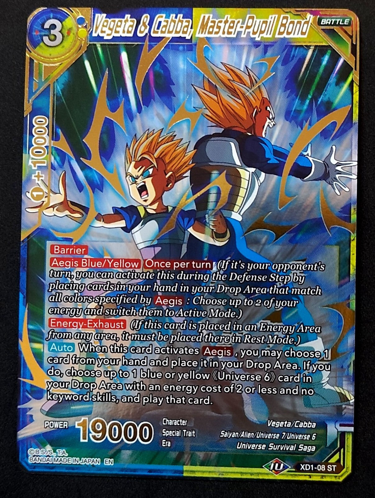 Dragon Ball Super Card Game enthusiasts will be thrilled to add this Vegeta & Cabba, Master-Pupil Bond XD1-08 ST Foil...
