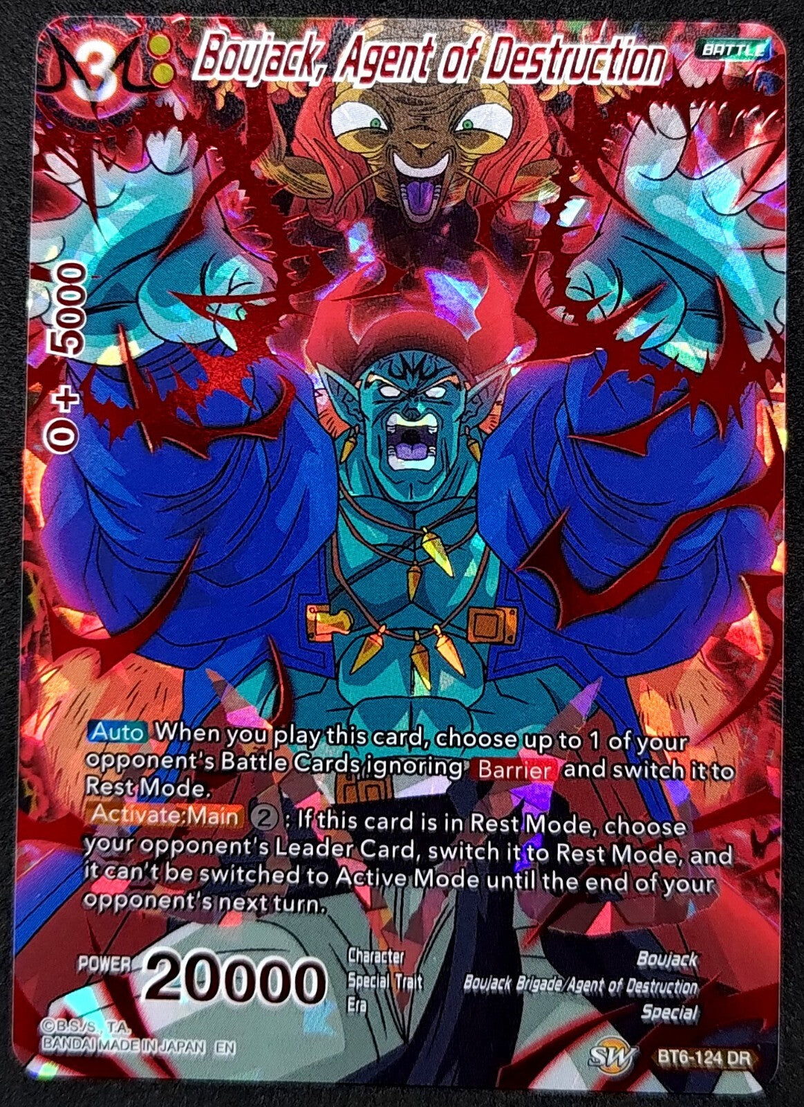 Dragon Ball Super fans, get ready to add the powerful Boujack, Agent of Destruction BT6-124 DR foil card to your...