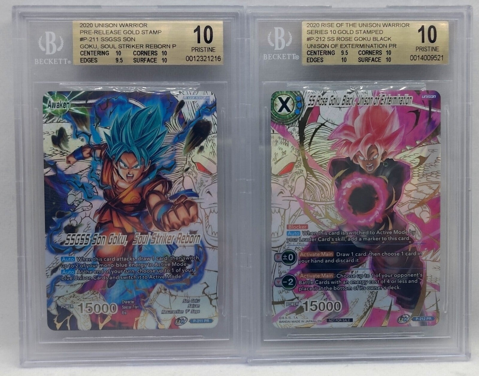 Celebrate the power of Son Goku with this exclusive Dragon Ball Super Card Game promo BGS 10 pair featuring SSGSS...