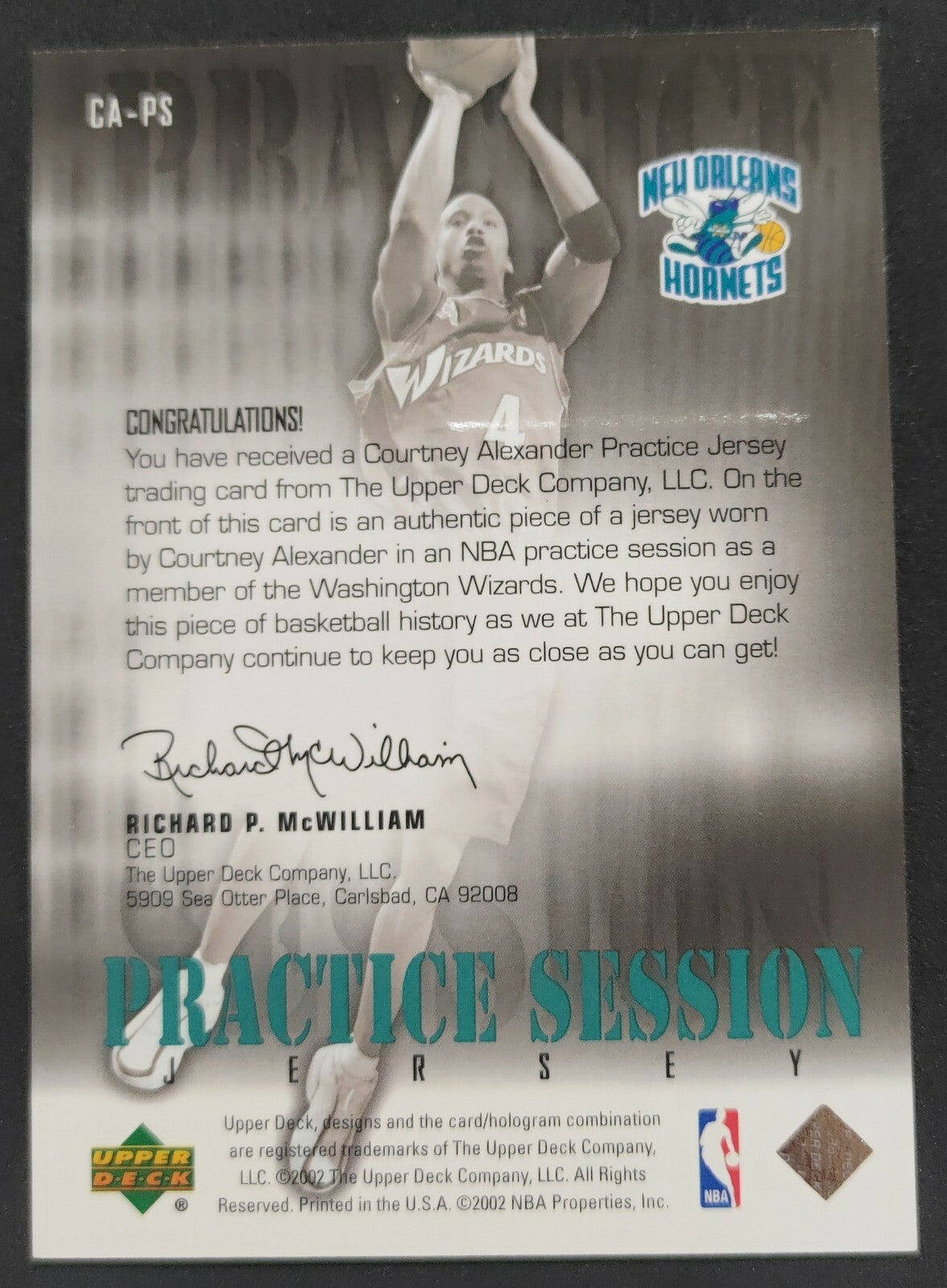 NBA - 2002 Upper Deck Practice Session Courtney Alexander Patch Card. Card is in NM condition, however, please use photos...