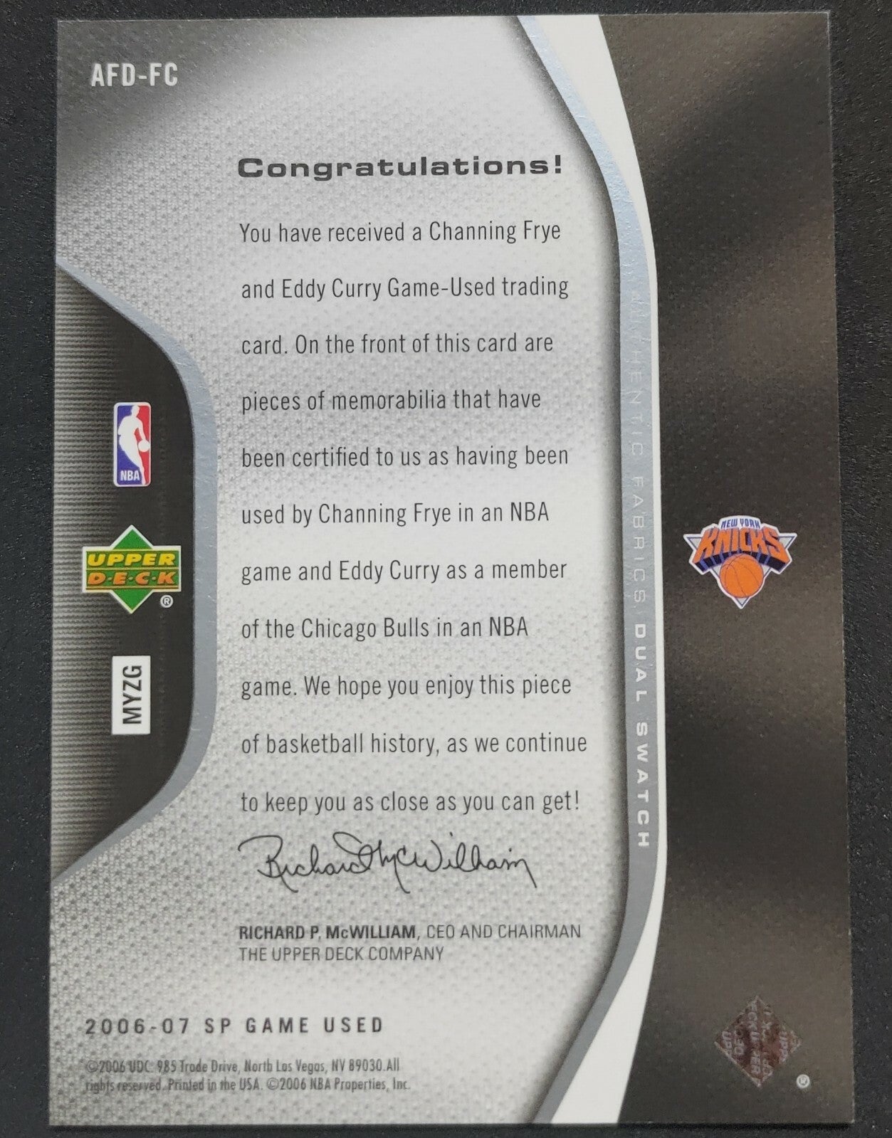 – Sold OutNBA - 2006-07 SP Game Used Dual Swatch Channing Frye/Eddy Curry Dual Patch Card. Card is in NM condition, however,...