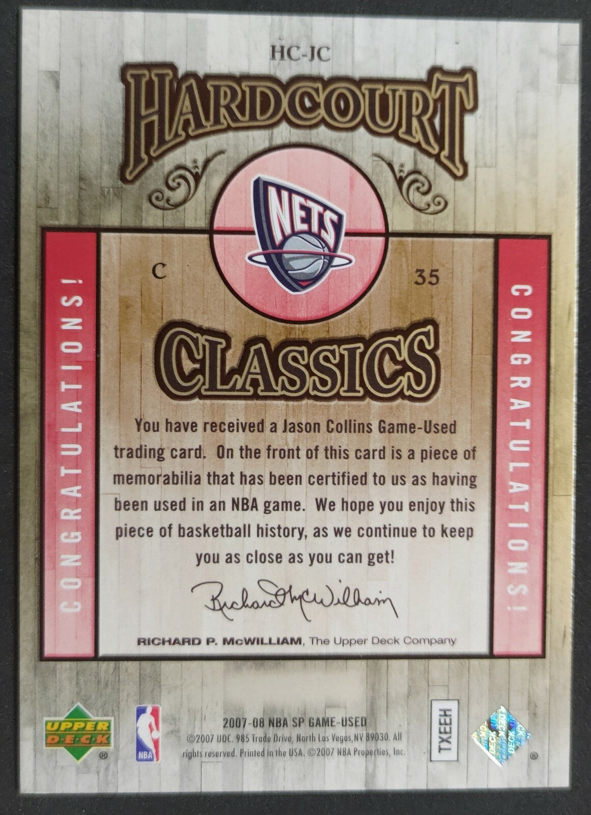 NBA - 2007-08 SP Hardcourt Classics Jason Collins 078/199 Patch Card. Card is in NM condition, however, please use photos...