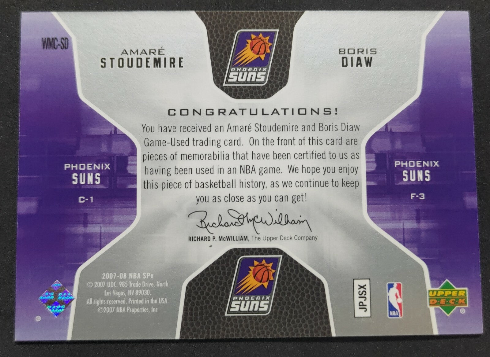 – Sold OutNBA - 2007-08 SPx Winnings Materials Amare Stoudemire/Boris Diaw Dual Patch Card. Card is in NM condition, however, please use...