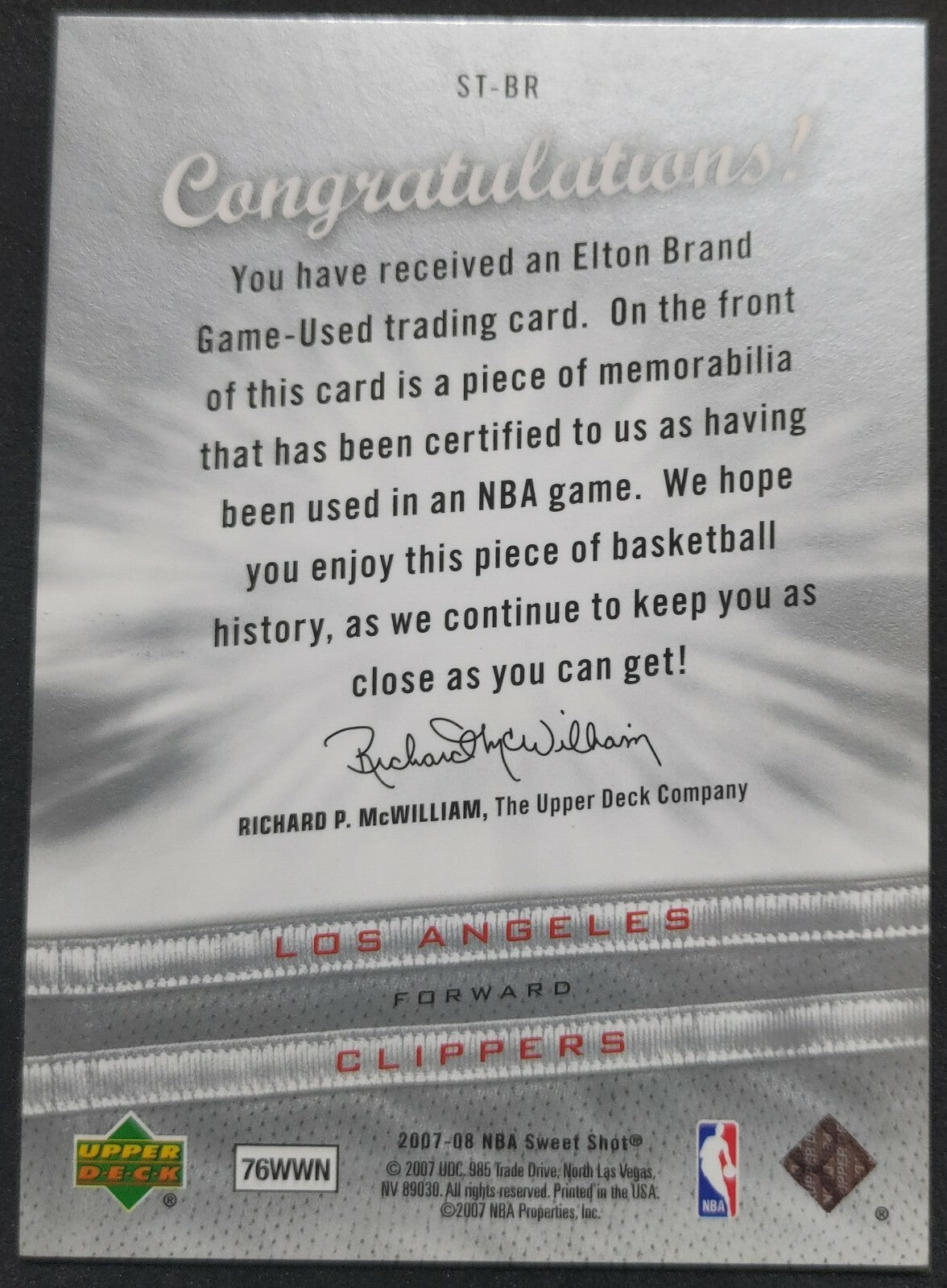 NBA - 2007-08 Sweet Shot Sweet Stitches Elton Brand Patch Card. Card is in NM condition, however, please use photos...