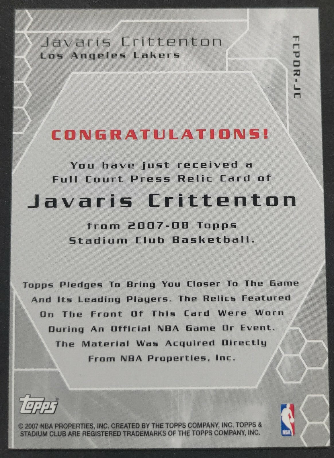 NBA - 2007-08 Topps Stadium Full Court Press Javaris Crittenton 179/199 Dual Jersey Card Card is in NM condition, however,...