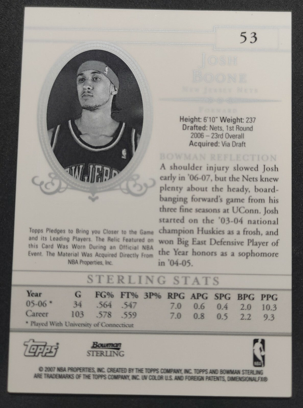 NBA - 2007 Bowman Sterling Josh Boone Patch Card. Card is in NM condition, however, please use photos to assess...