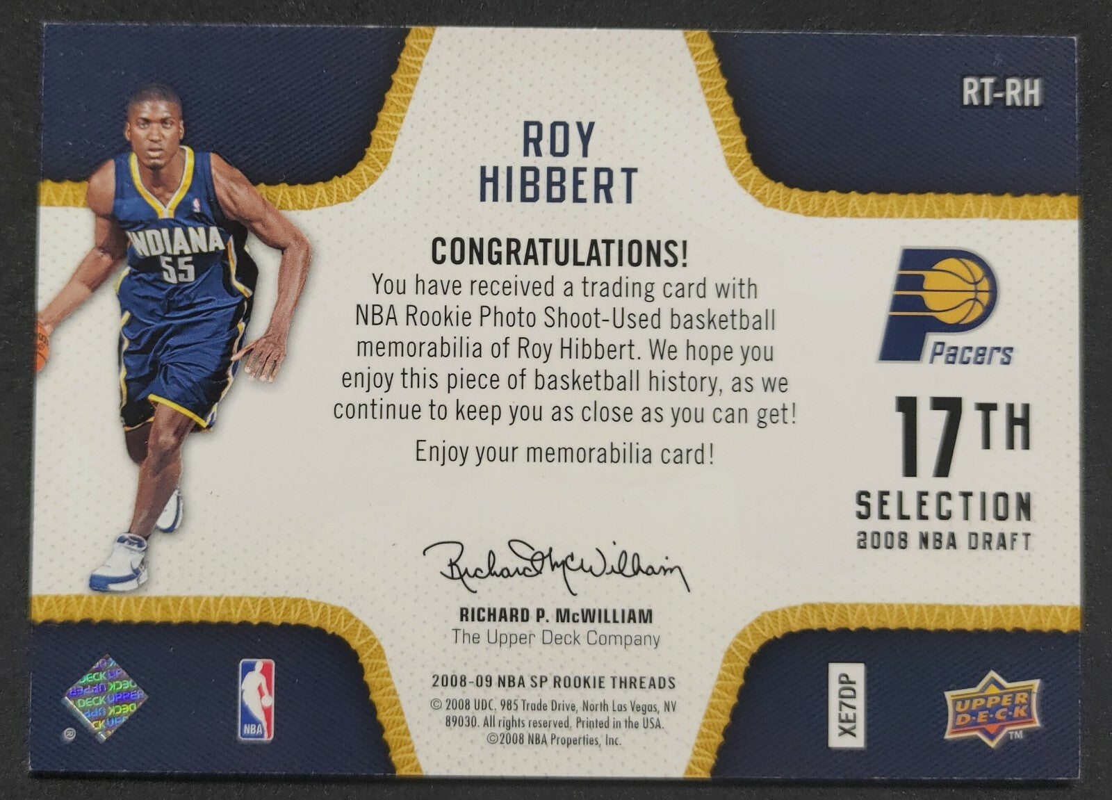 – Sold OutNBA - 2008-09 SP Rookie Threads Roy Hibbert 038/125 Dual Patch Card. Card is in NM condition, however, please use...
