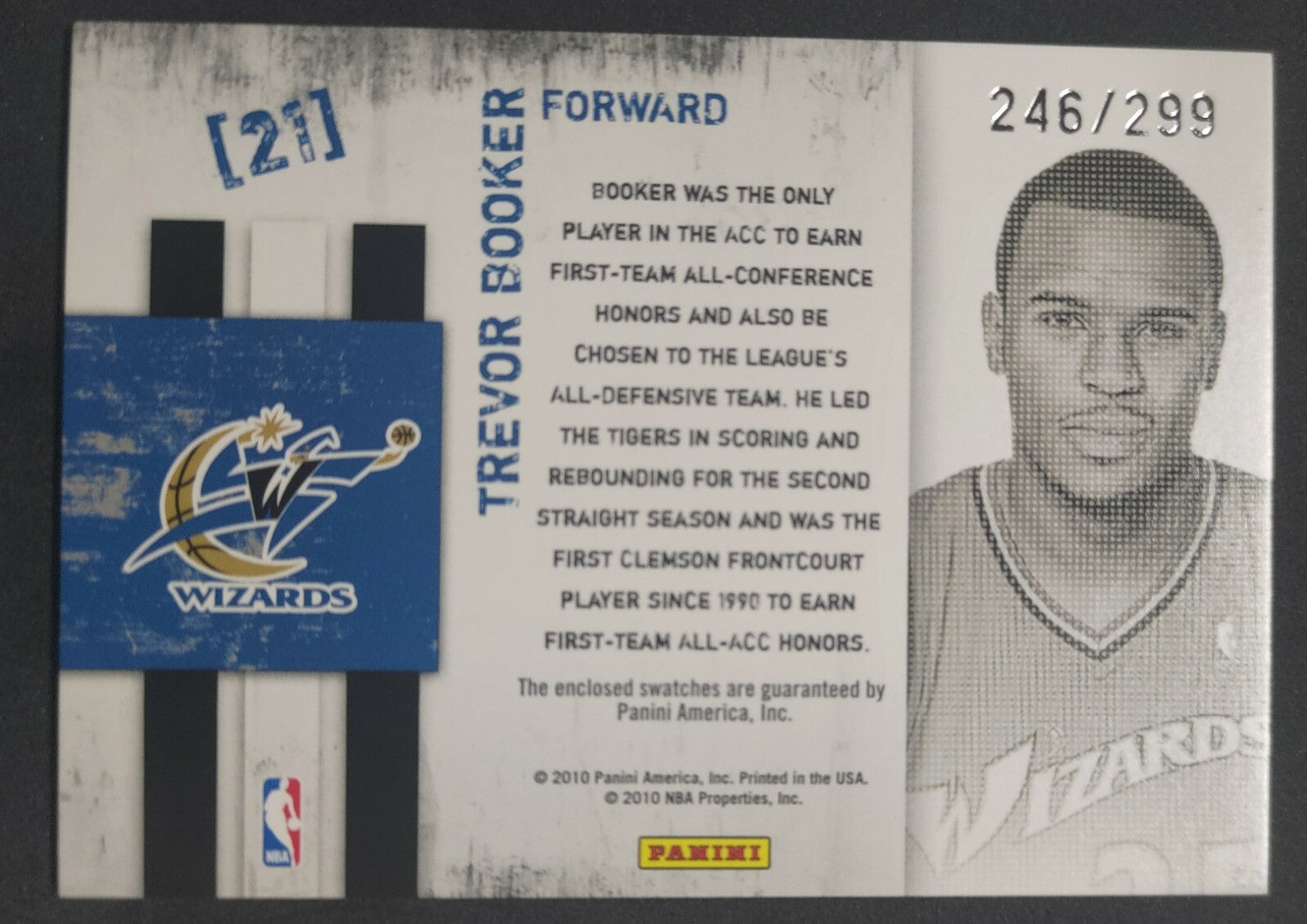 NBA - 2010 Panini Freshman Orientation Trevor Booker 246/299 Dual Patch Card. Card is in NM condition, however, please use...
