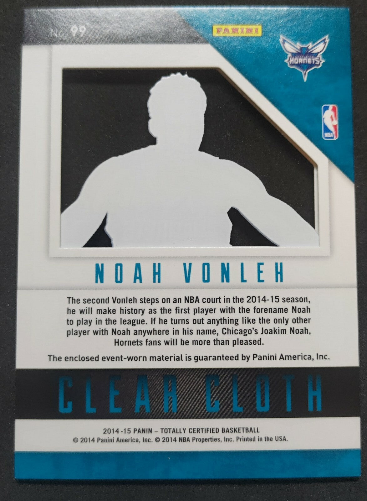 NBA - 2014-15 Panini Clear Cloth Noah Vonleh 271/299 Patch Card. Card is in NM condition, however, please use photos...