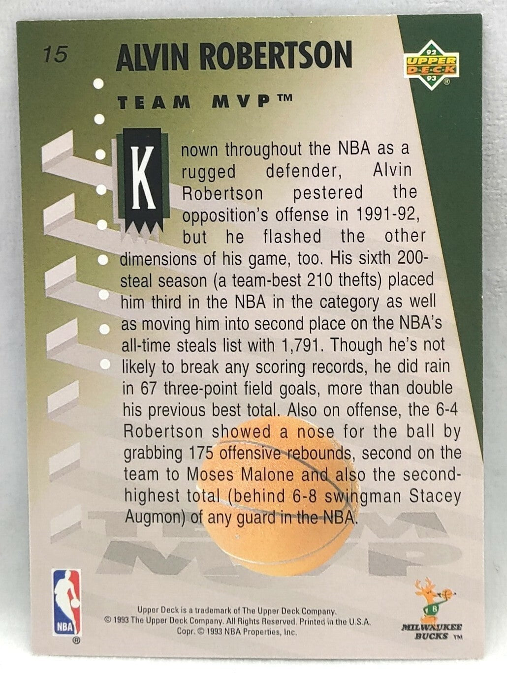 NBA - Alvin Robertson 1992 MVP Holograms #15 Upper Deck NM/M Card. Card is in NM/M condition. Card will be...