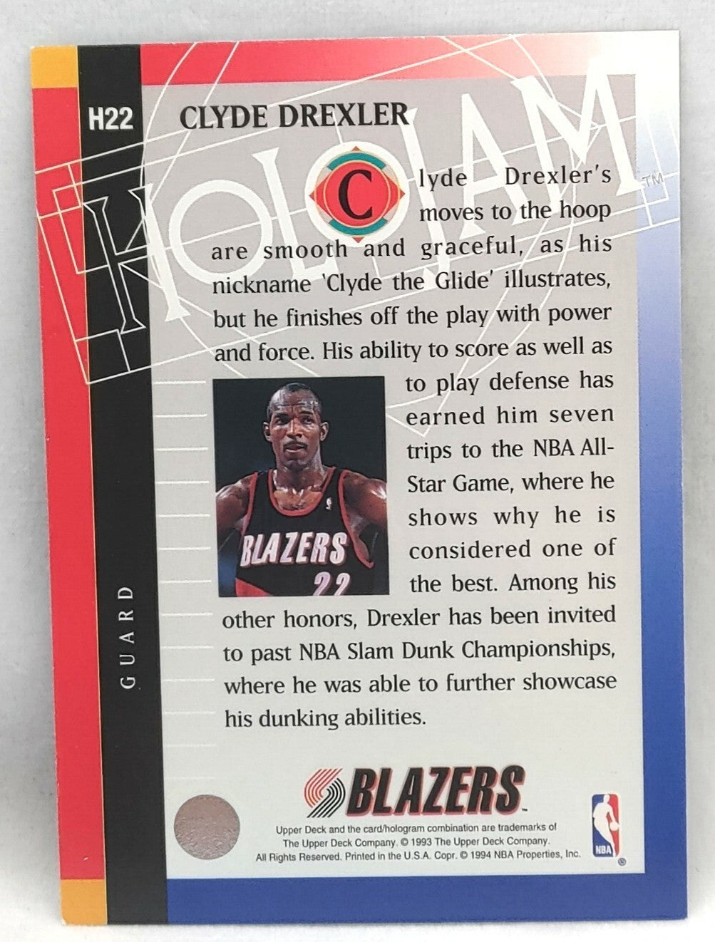 NBA - Clyde Drexler Holojam H22 1993 Upper Deck NM/M Card. Card is in NM/M condition. Card will be sent...