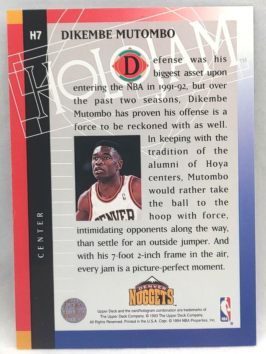 NBA - Dikembe Mutombo Holojam H7 1993 Upper Deck NM/M Card. Card is in NM/M condition. Card will be sent...