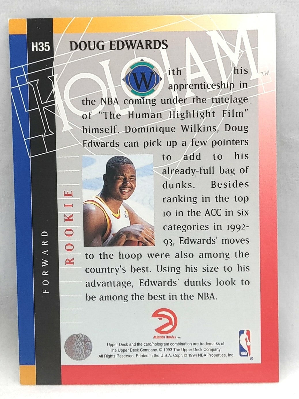 NBA - Doug Edwards Holojam H35 1993 Upper Deck NM/M Card. Card is in NM/M condition. Card will be sent...