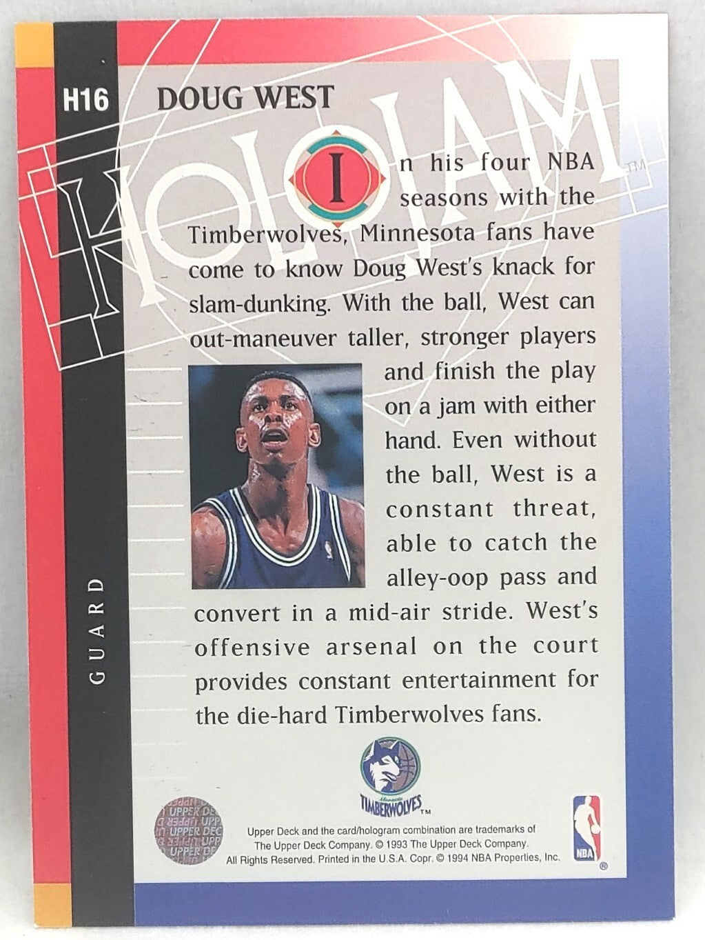 NBA - Doug West Holojam H16 1993 Upper Deck NM/M Card. Card is in NM/M condition. Card will be sent...