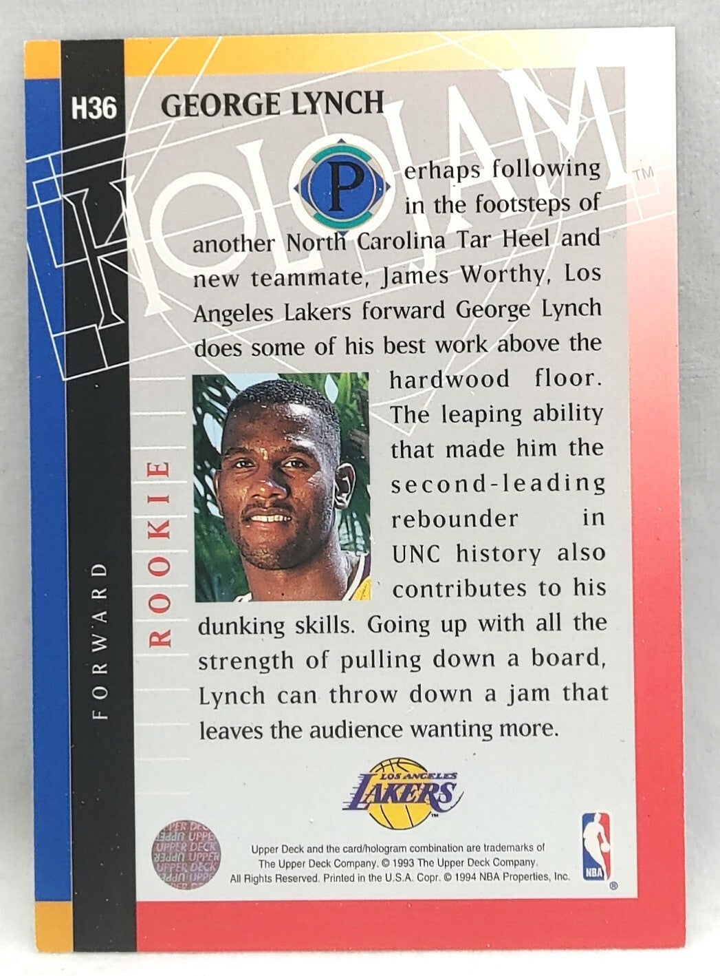 NBA - George Lynch Holojam H36 1993 Upper Deck NM/M Card. Card is in NM/M condition. Card will be sent...