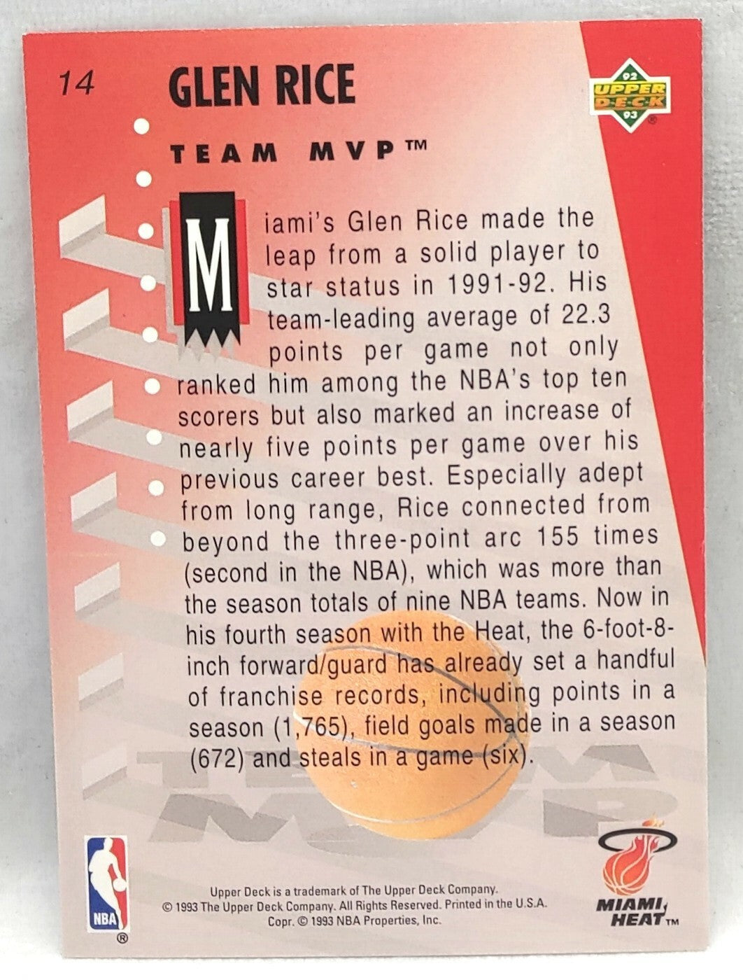 NBA - Glen Rice 1992 MVP Holograms #14 Upper Deck NM/M Card. Card is in NM/M condition. Card will be...