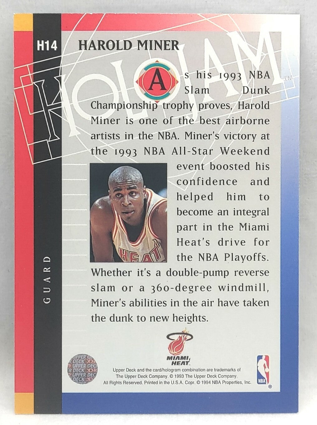 NBA - Harold Miner Holojam H14 1993 Upper Deck NM/M Card. Card is in NM/M condition. Card will be sent...
