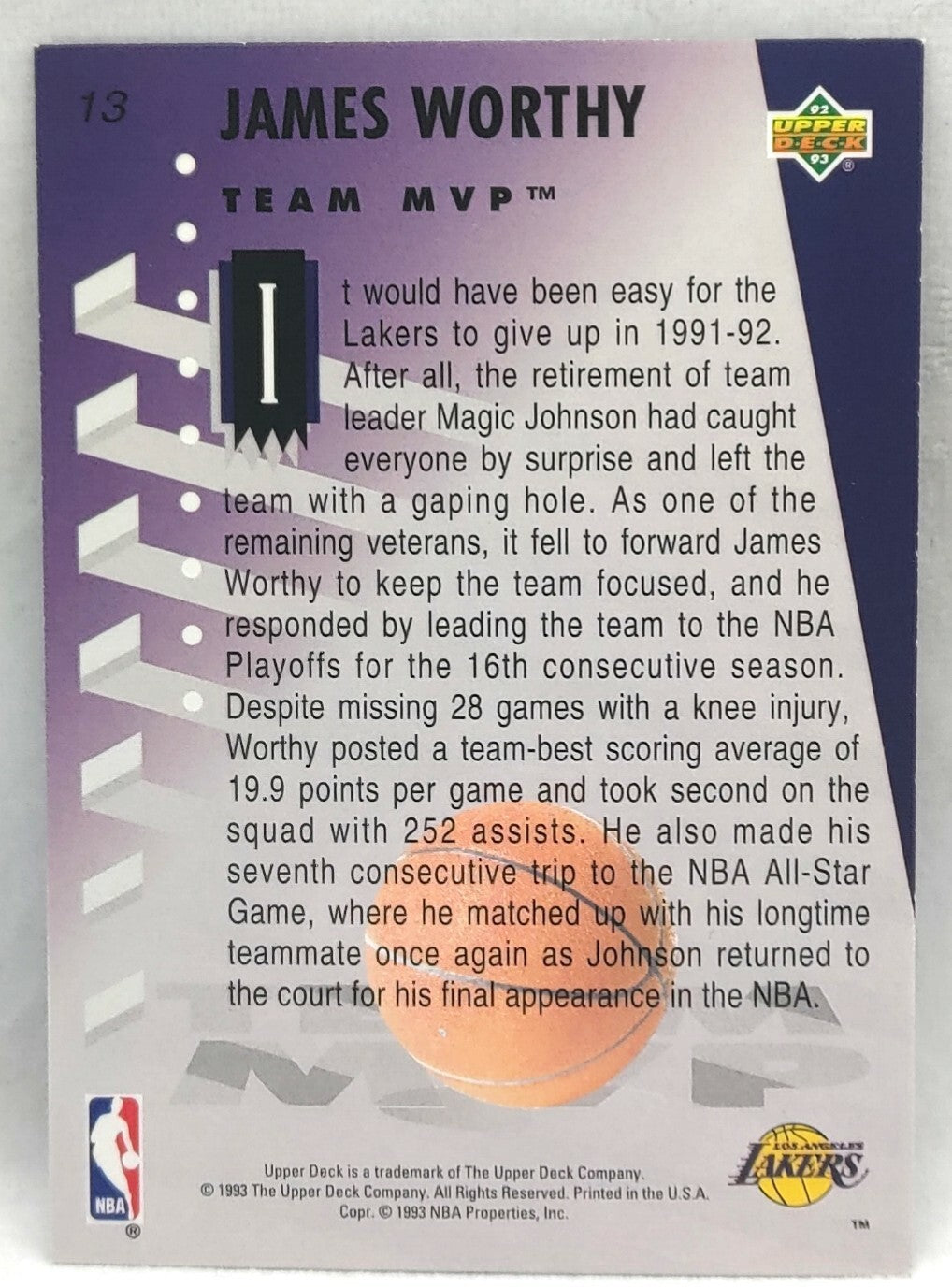 NBA - James Worthy 1992 MVP Holograms #13 Upper Deck NM/M Card. Card is in NM/M condition. Card will be...