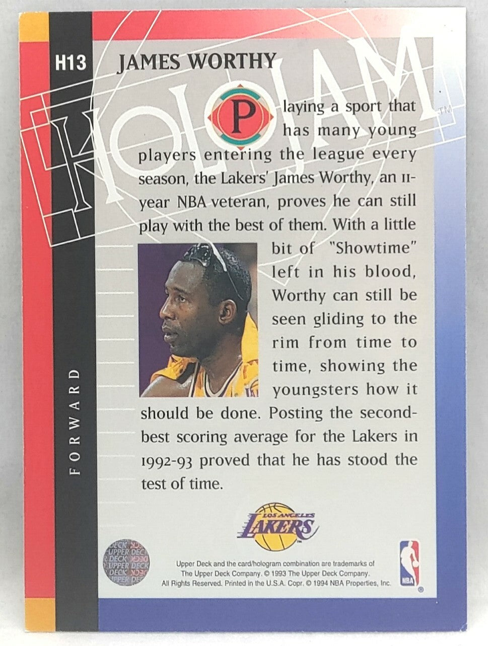 NBA - James Worthy Holojam H13 1993 Upper Deck NM/M Card. Card is in NM/M condition. Card will be sent...