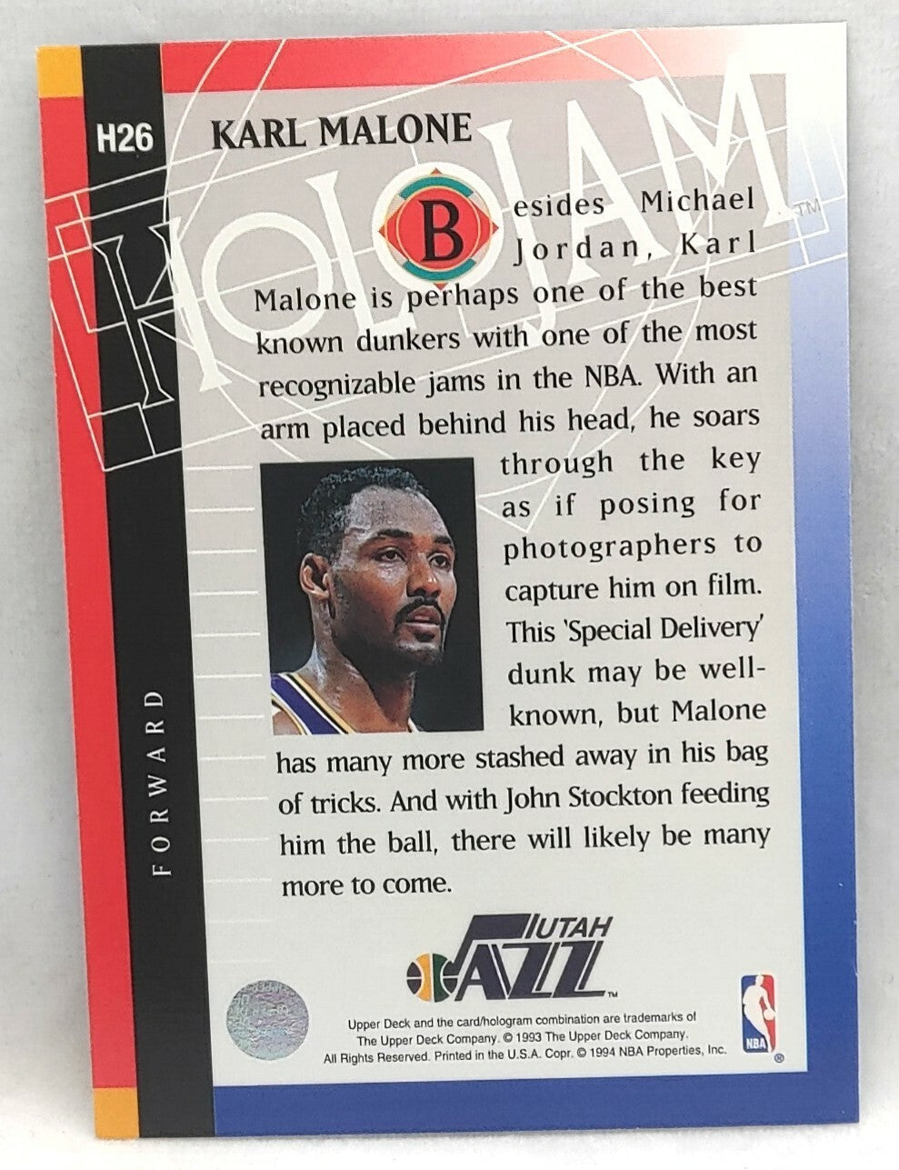 NBA - Karl Malone Holojam H26 1993 Upper Deck NM/M Card. Card is in NM/M condition. Card will be sent...