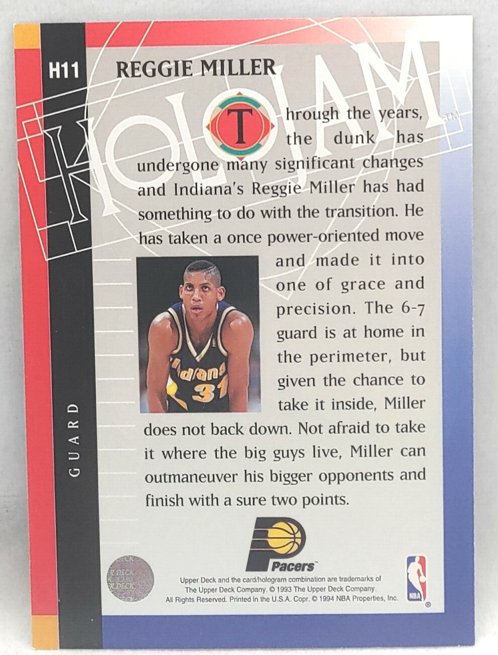 – Sold OutNBA - Reggie Miller Holojam H11 1993 Upper Deck NM/M Card. Card is in NM/M condition. Card will be sent...