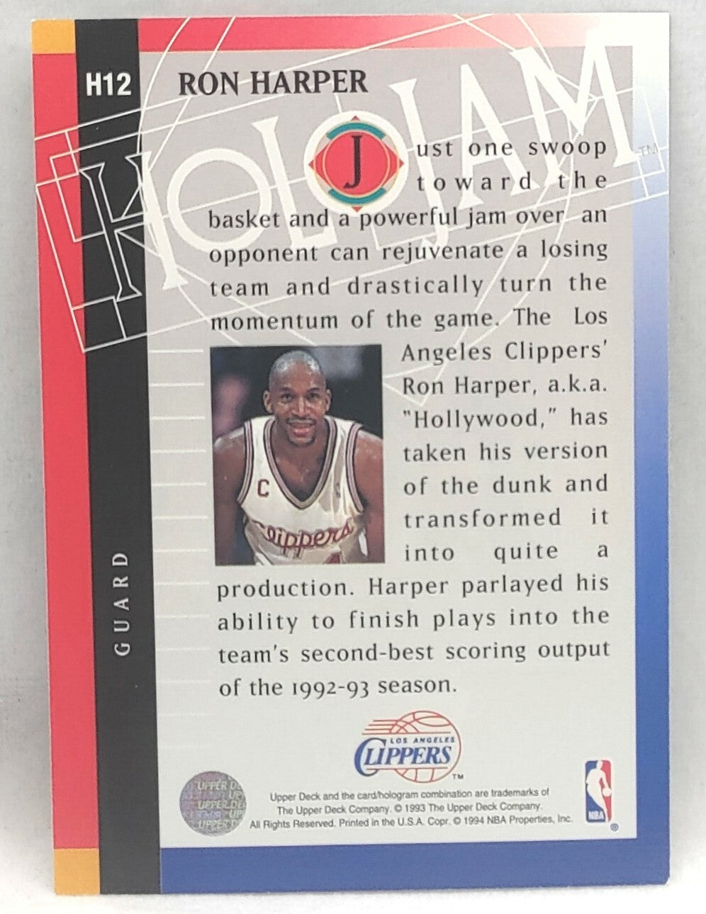 NBA - Ron Harper Holojam H12 1993 Upper Deck NM/M Card. Card is in NM/M condition. Card will be sent...