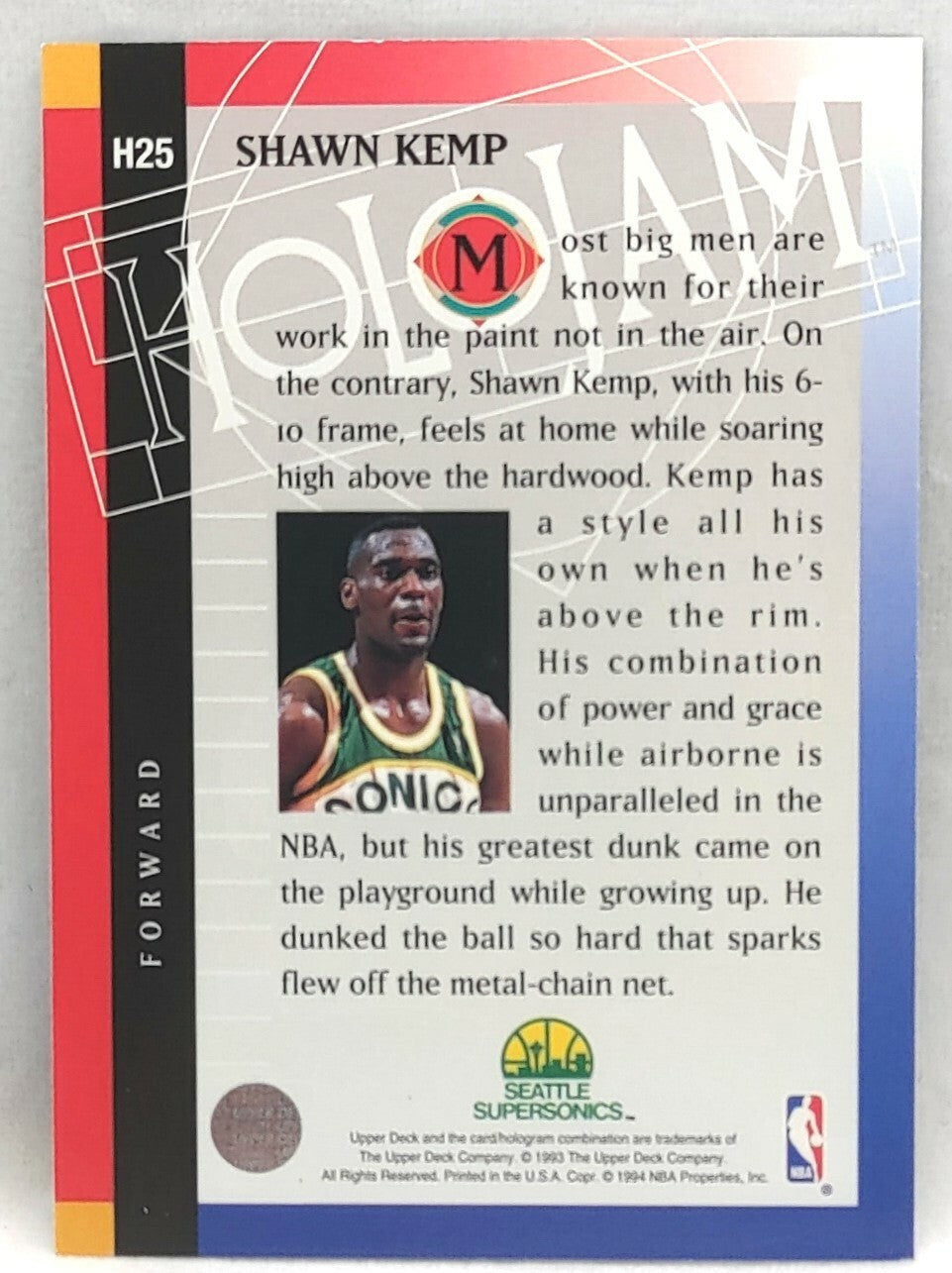 NBA - Shawn Kemp Holojam H25 1993 Upper Deck NM/M Card. Card is in NM/M condition. Card will be sent...