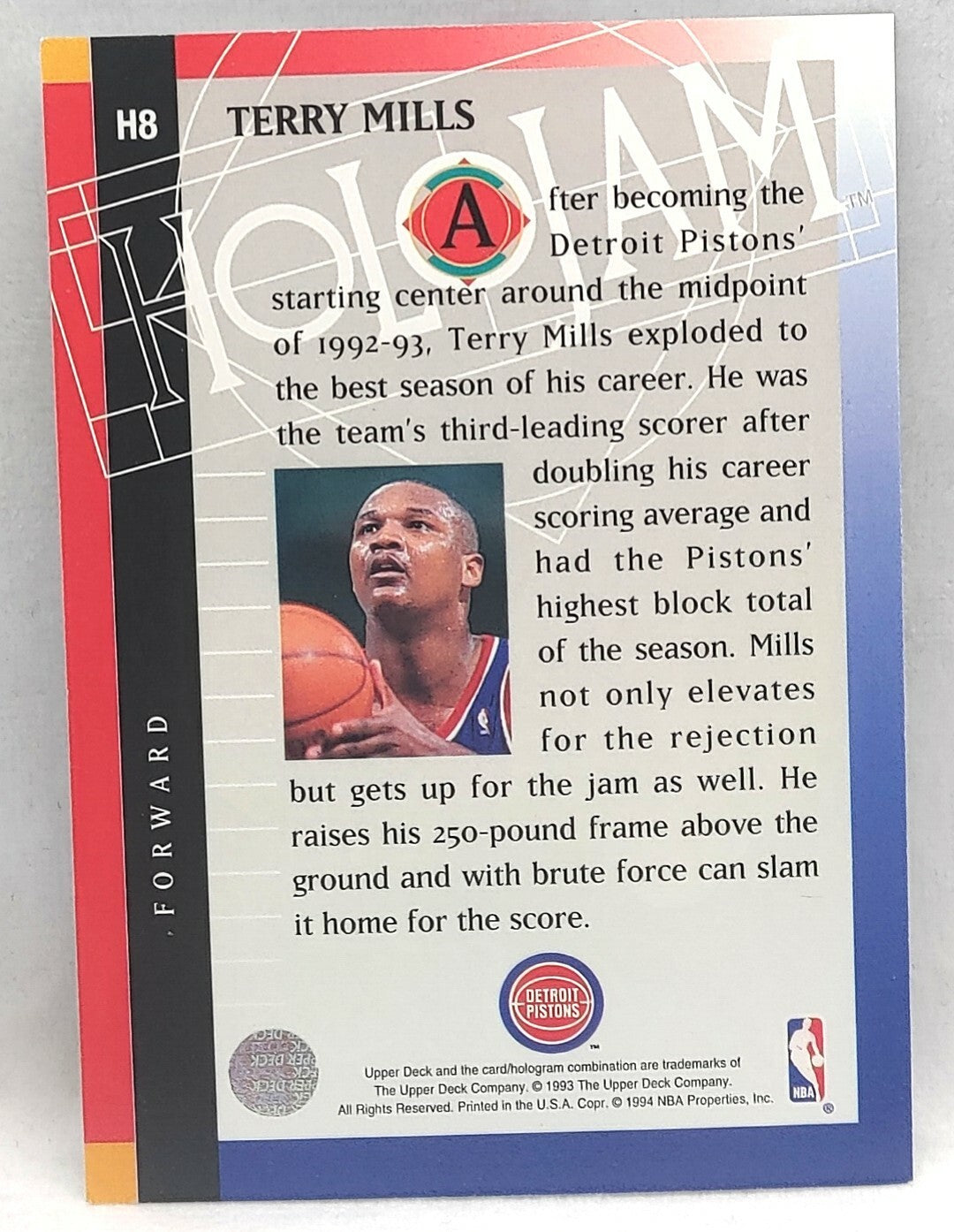 NBA - Terry Mills Holojam H8 1993 Upper Deck NM/M Card. Card is in NM/M condition. Card will be sent...