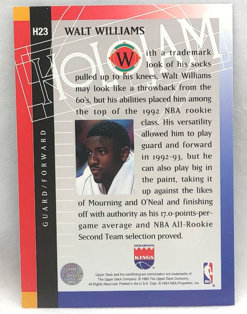 NBA - Walt Williams Holojam H23 1993 Upper Deck NM/M Card. Card is in NM/M condition. Card will be sent...