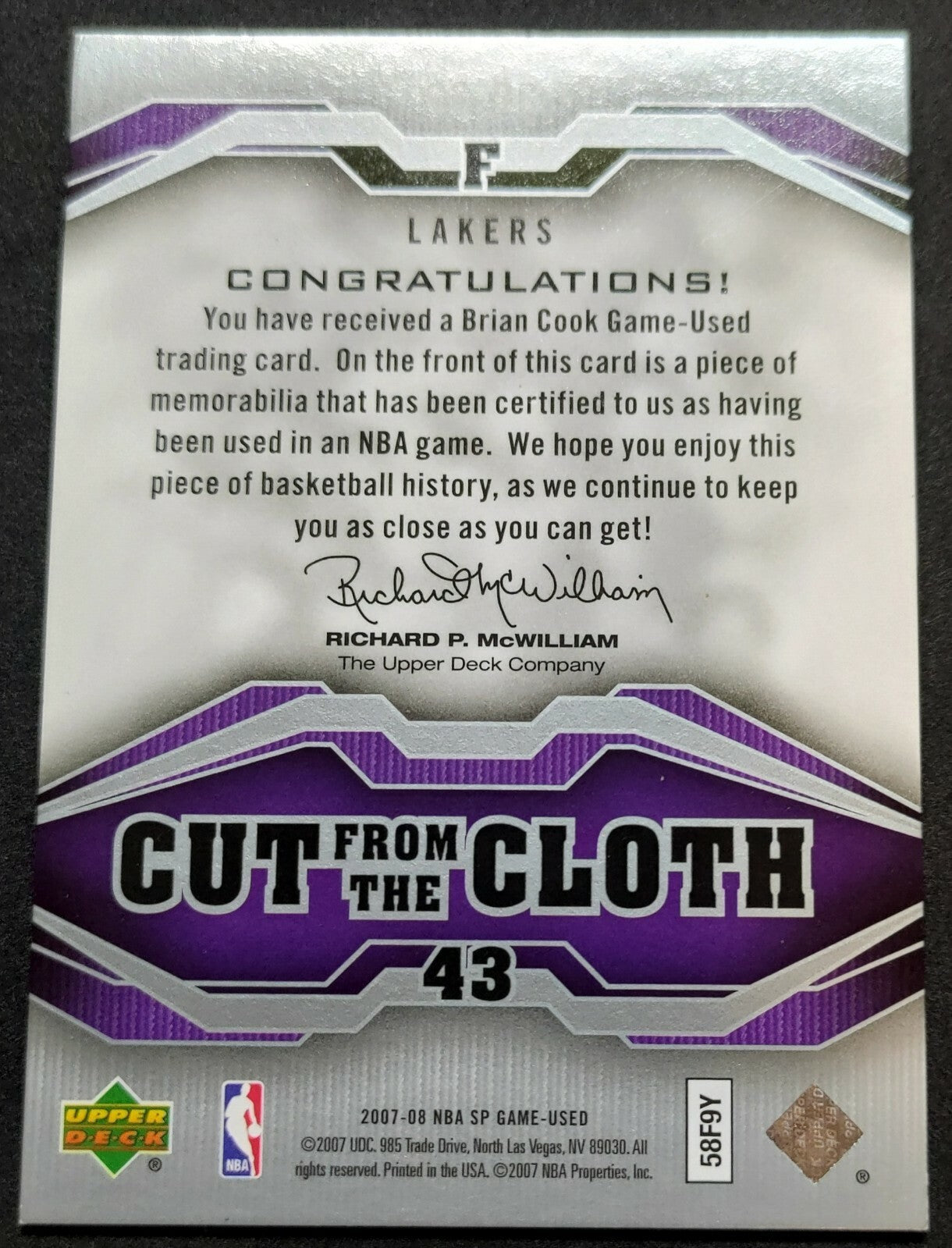 NBA - 2007-08 SP Cut From Cloth Brian Cook Patch Card. Card is in NM condition, however, please use photos...