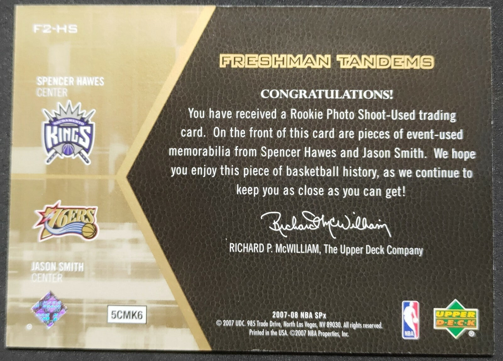 NBA - 2007-08 SPx Freshman Tandems Hawes/Smith Dual Patch Card. Card is in NM condition, however, please use photos to...