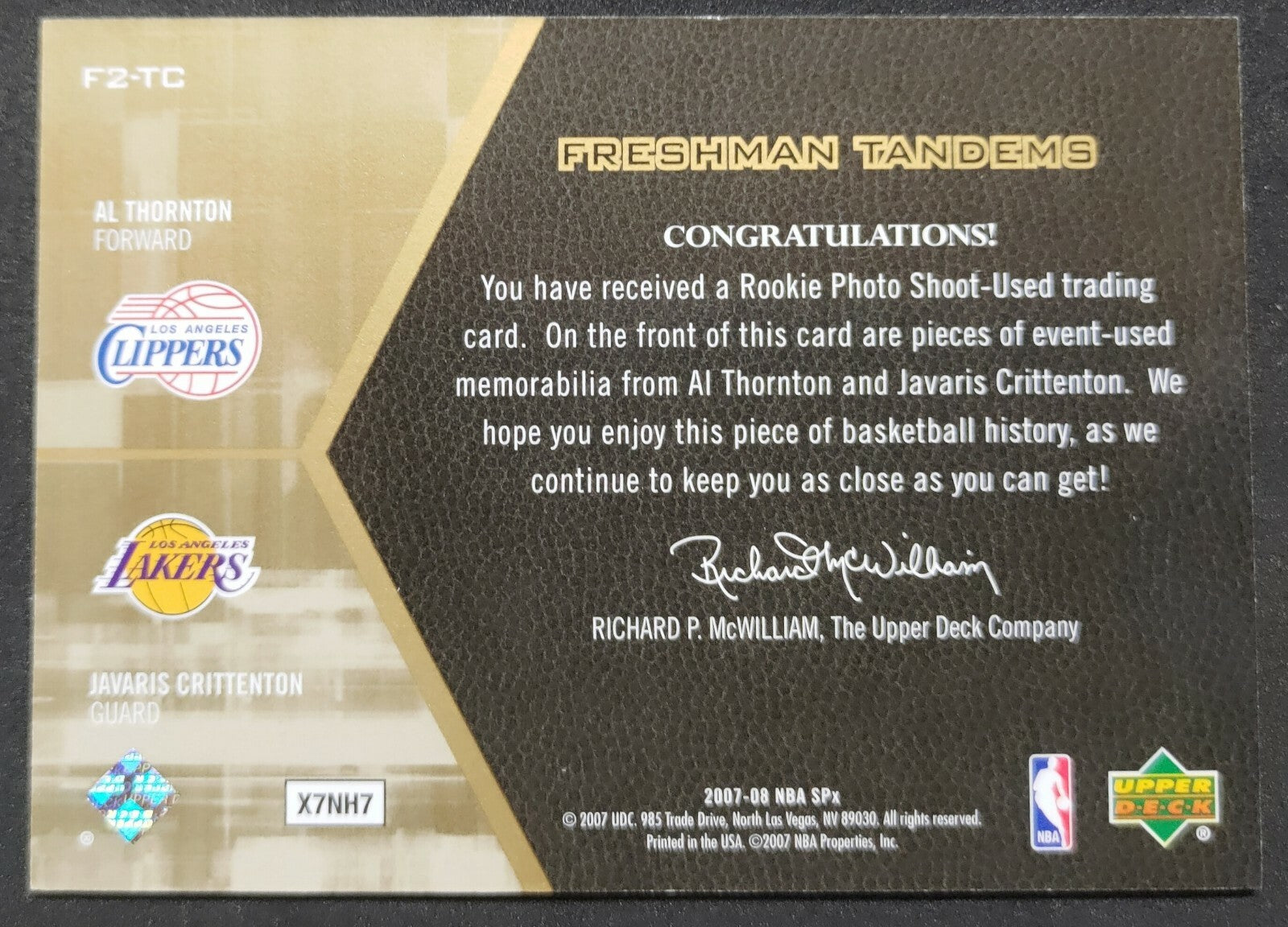 NBA - 2007-08 SPx Freshman Tandems Thornton/Crittenton Dual Patch Card. Card is in NM condition, however, please use photos to...