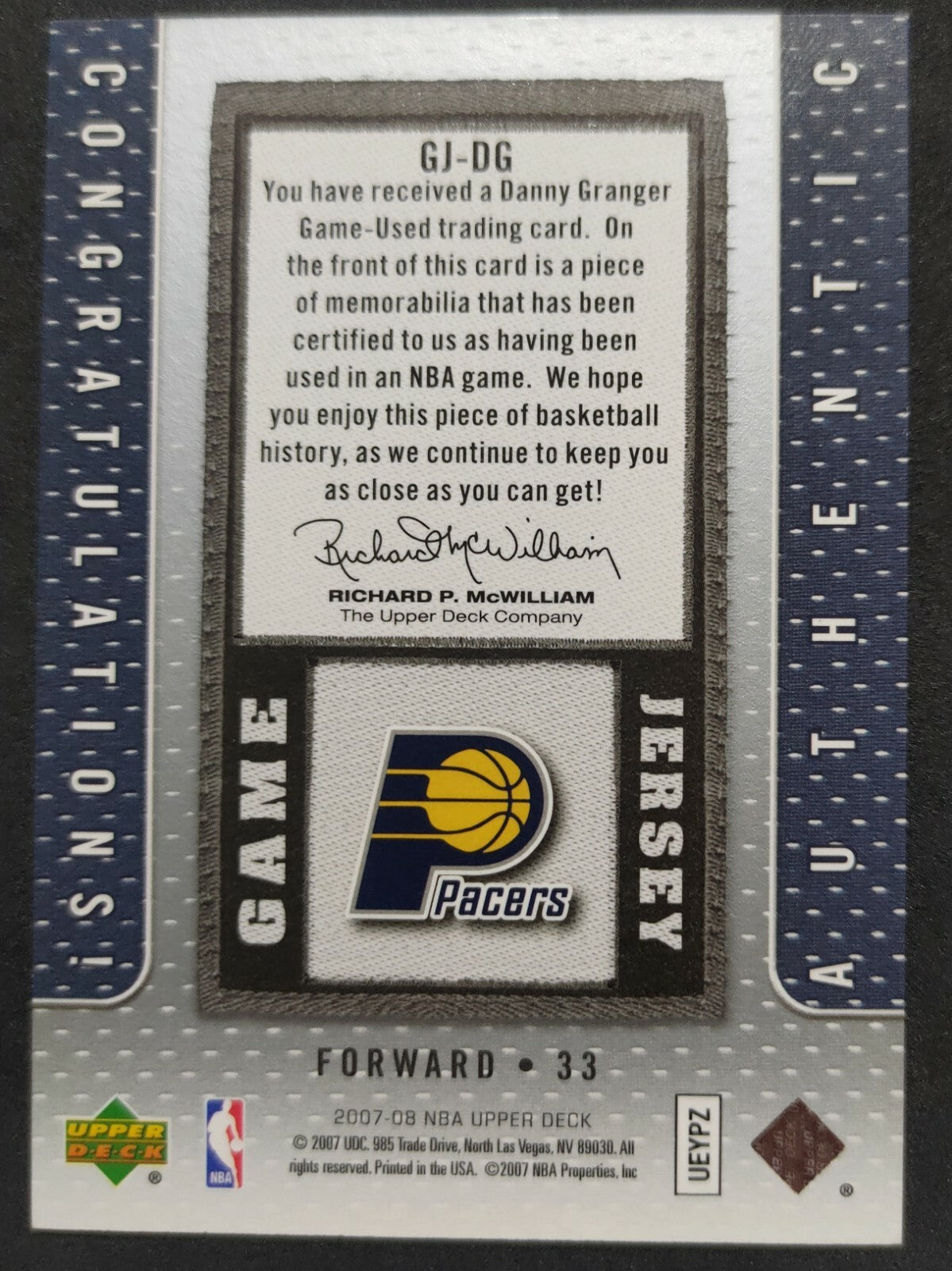 – Sold OutNBA - 2007-08 Upper Deck Game Jersey Danny Granger Patch Card. Card is in NM condition, however, please use photos...