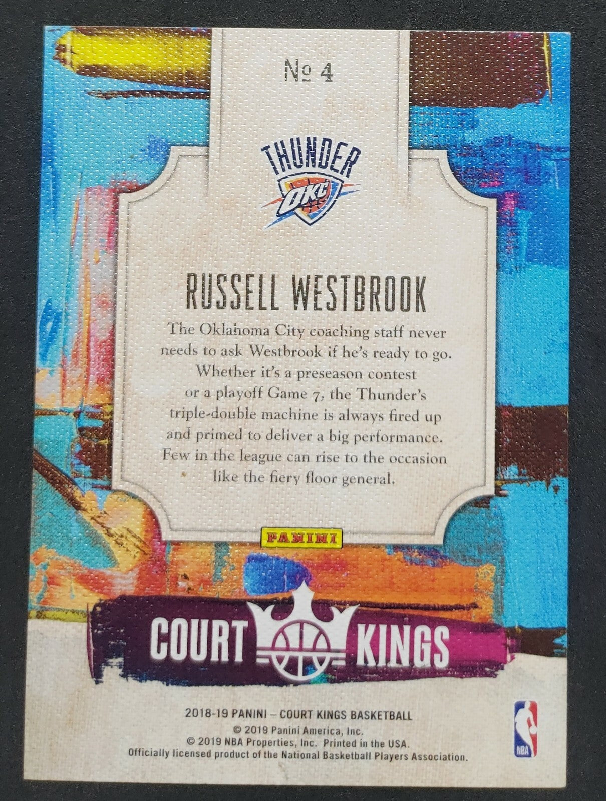 – Sold OutNBA - 2018-19 Panini Court Kings Renaissance Men - Russell Westbrook #4 Card. Card is in NM condition, however, please...