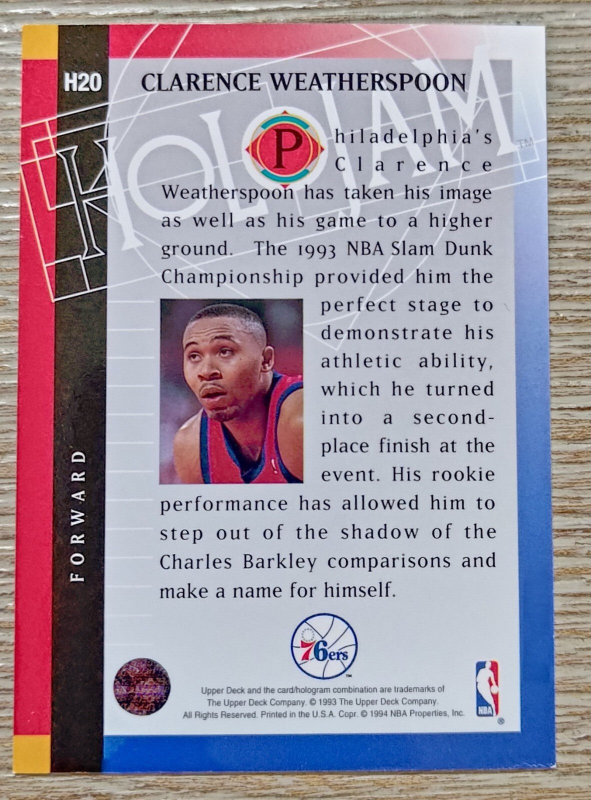 NBA - Clarence Weatherspoon Holojam H20 1993 Upper Deck NM/M Card. Card is in NM/M condition. Card will be sent...