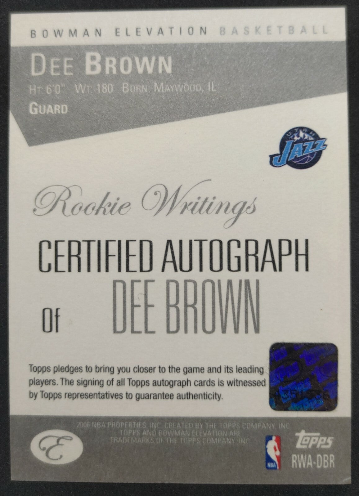 NBA - Dee Brown 2006 Topps Bowman Elevation Rookie Writings Autograph Card. Card is in NM condition, however, please use...